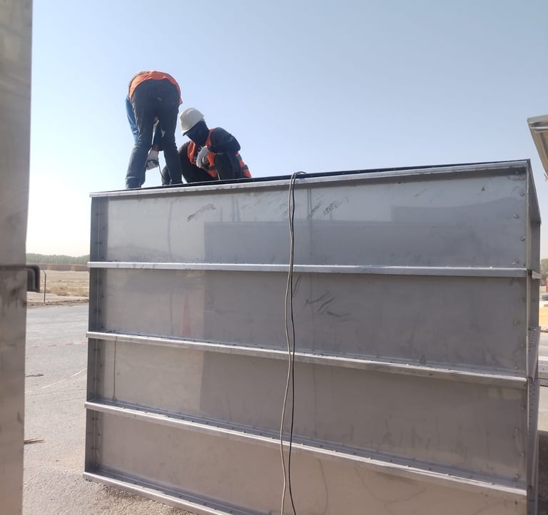 نقوم بكل العمليات من القطع وثني وتشكيل وتجميع القطع المعدنية من المواد الخام (الصفائح المعدنية، الصفائح، الفولاذ الهيكلي، الأنابيب). قد يشمل ذلك أي شيء، من دعامة بسيطة إلى هيكل مُصمم خصيصًا ومعقد.